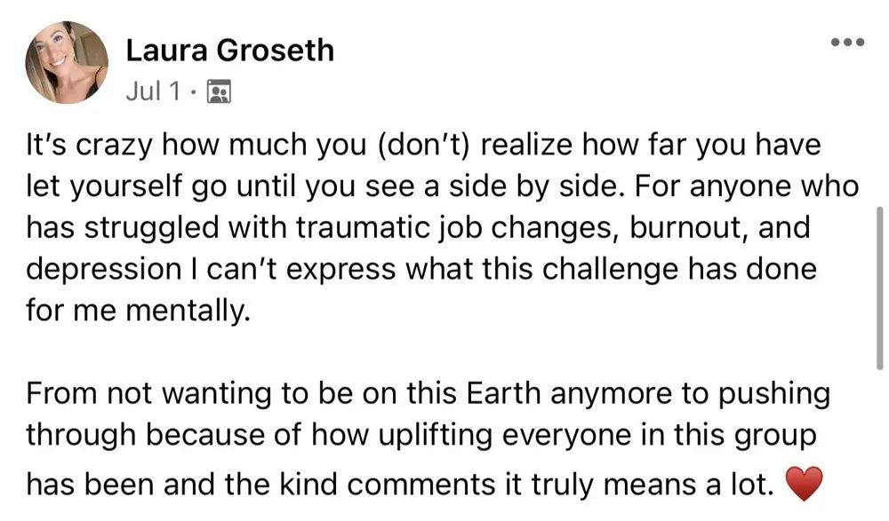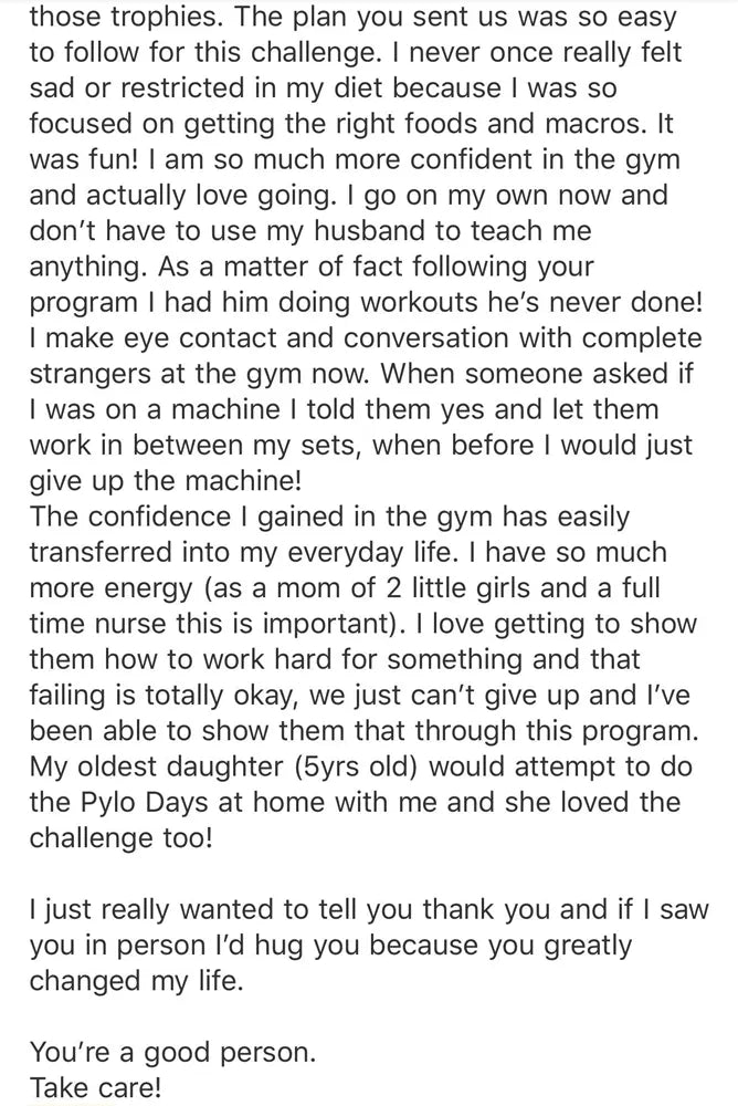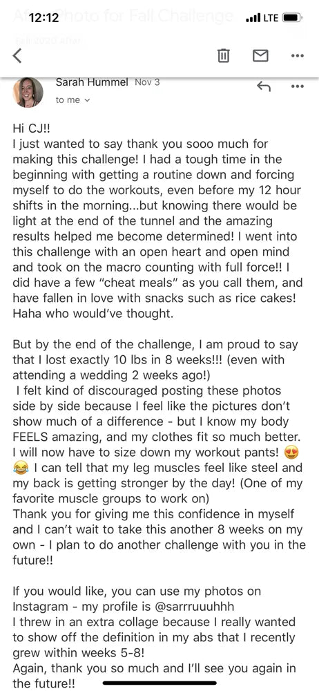 “I am on week 3 of the challenge. I love it. I have twins so my abdomen has always been the hardest as well as thighs. I work out 6 days a week but have not seen results like I do with this program. I would recommend it to everyone.” – Crystal S.
