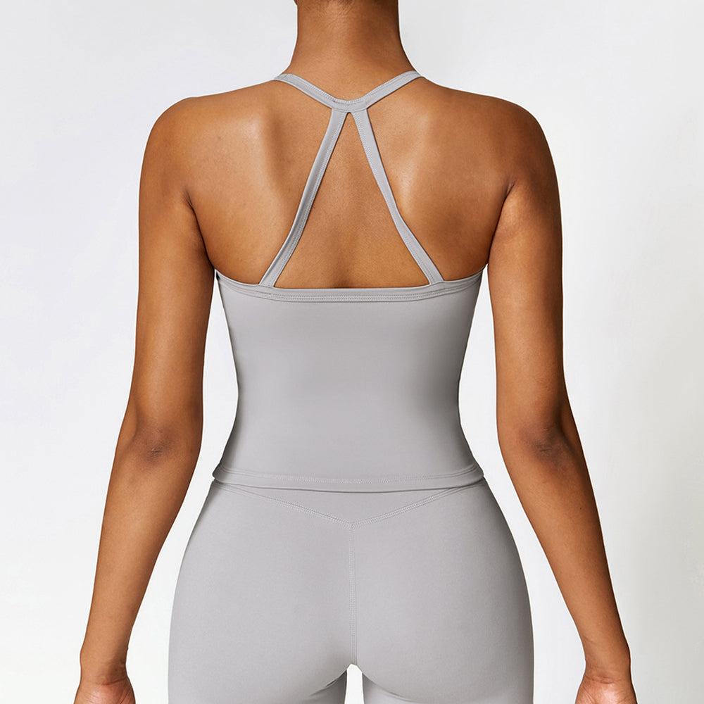 The classic spaghetti strap meets an upside down V strap in the back combining the best of both worlds: classic chic with a modern twist.