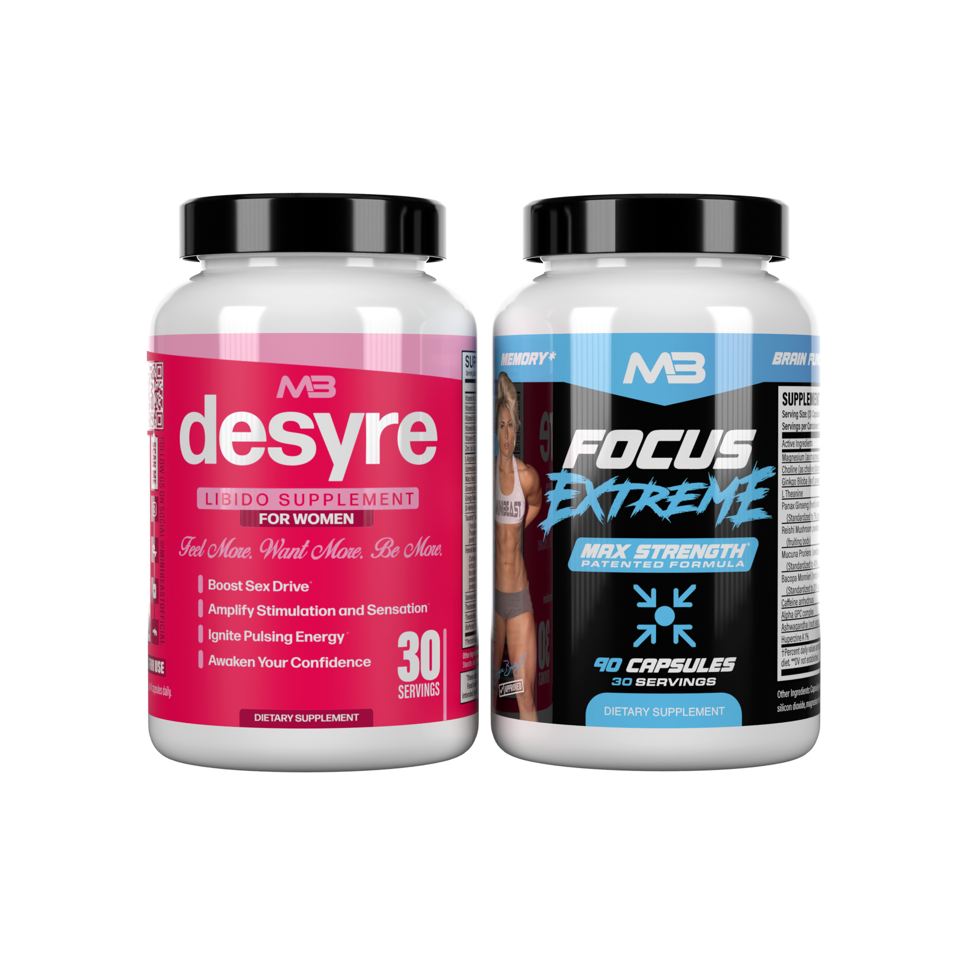 Confidence, clarity, and connection; on every level. Desyre elevates drive and energy from within, while Focus Extreme keeps your mind clear and your mood balanced. Together they light up your body and focus your energy where it matters most. You’ll feel centered, alive and completely in tune with yourself and your partner.