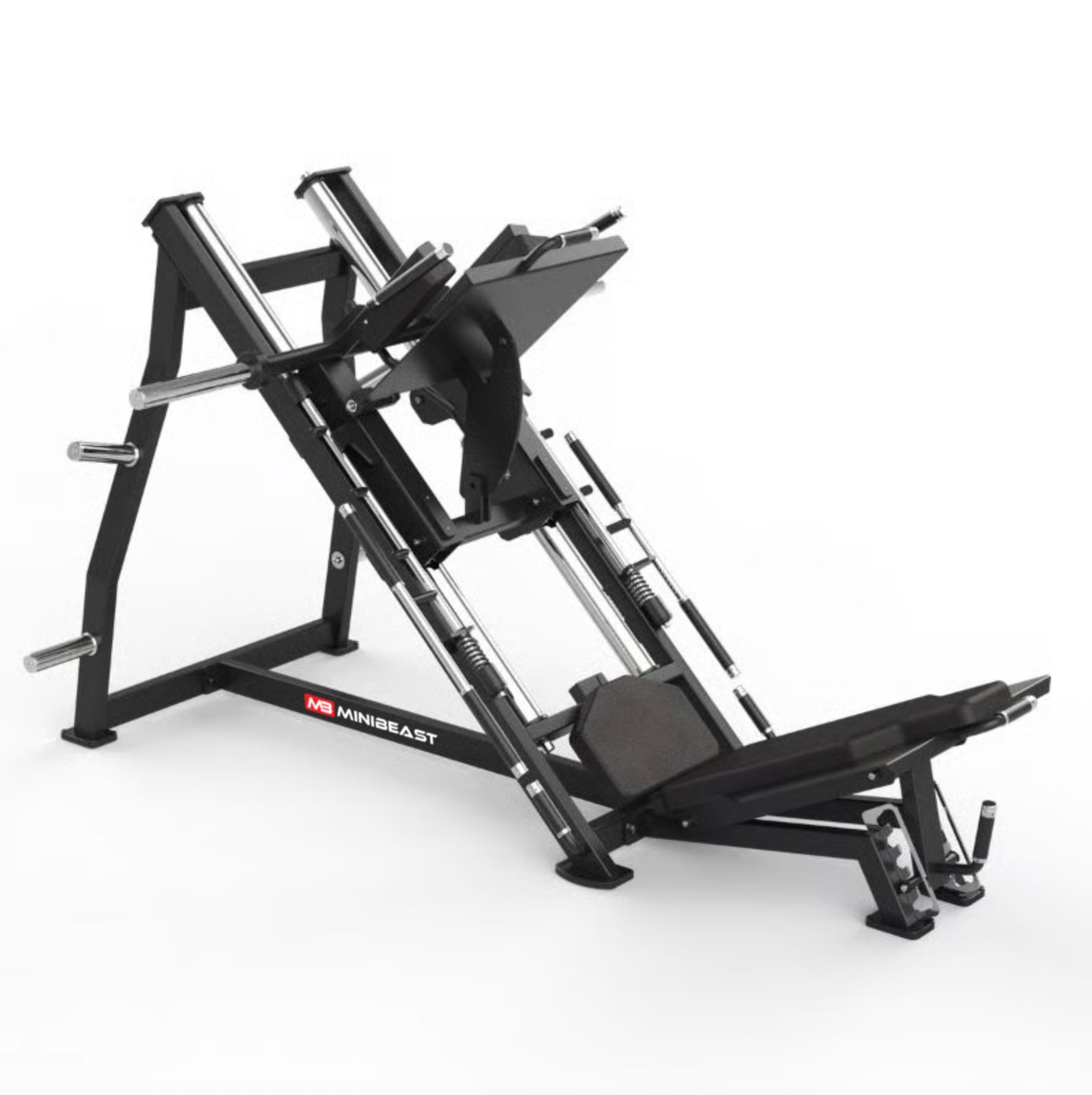 The Max Series Hack Squat / Leg Press offers dual functionality for comprehensive leg development. Adjustable platforms and padded supports allow users to switch exercises with ease while maintaining consistent support.