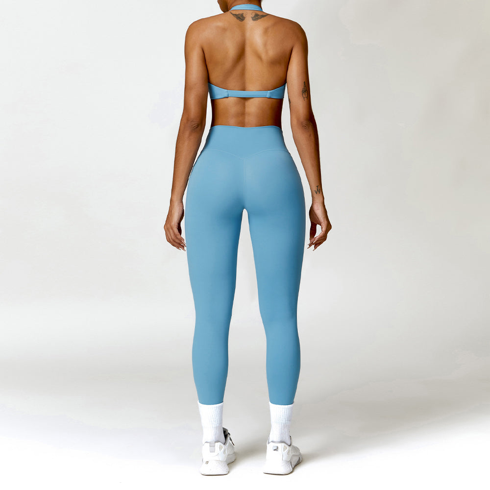 This haltered brazier holds you in all the right places, giving a backless look to show off your every effort of fitness and wellness while the contoured fit provides a flattering silhouette, making our Revolve top the must have accessory for athletic and casual wear alike.