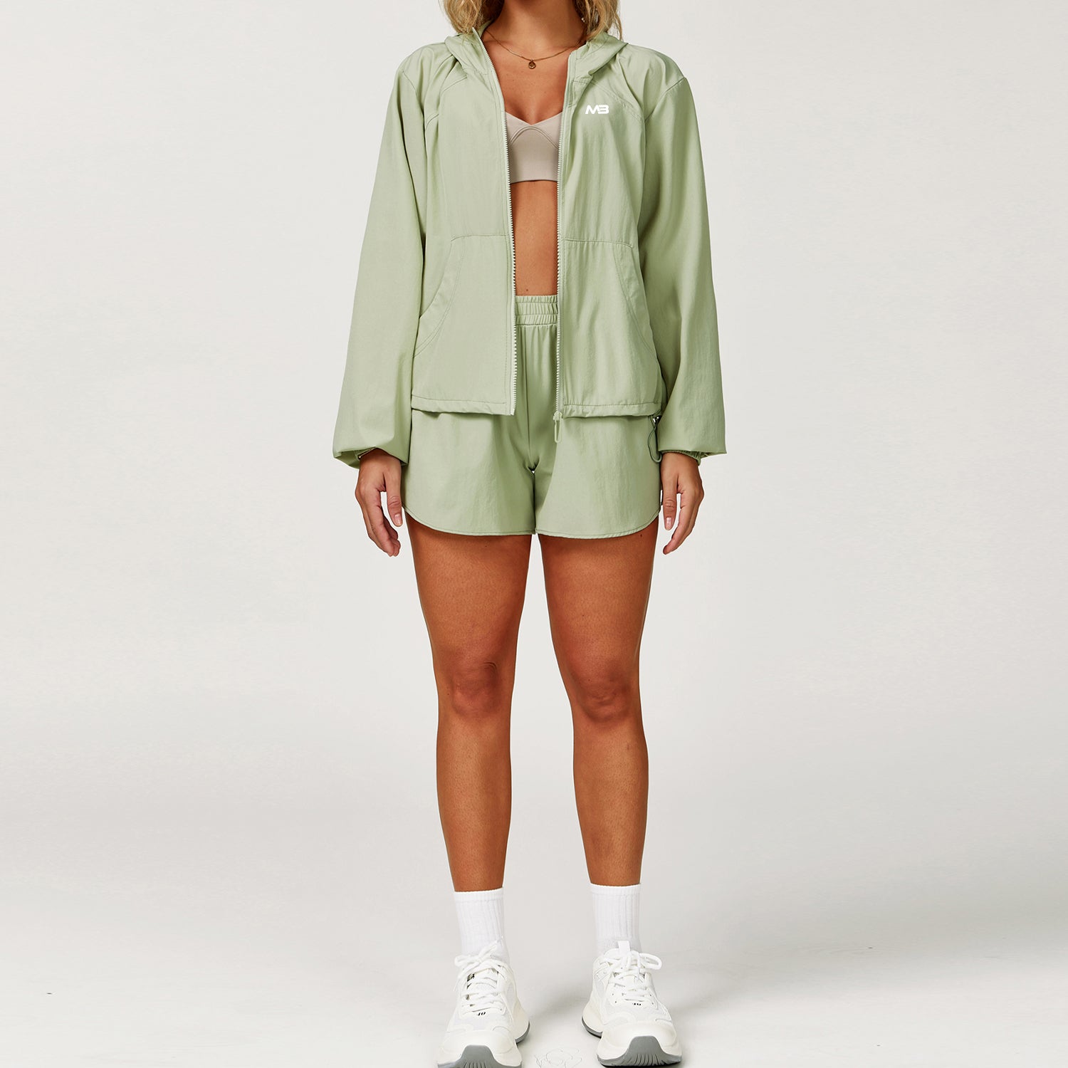 The clean silhouette creates a flattering, sculpted look on every body and the full zip front makes it easy to style open or closed. It pairs perfectly with Terra Shorts or any Minibeast bottom for a polished, sporty outfit.